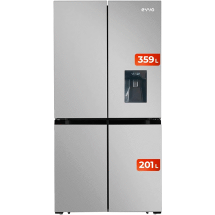El EVVO Frigorífico 4 Puertas F100 Total No Frost Inox es un electrodoméstico de refrigeración de gran capacidad diseñado para