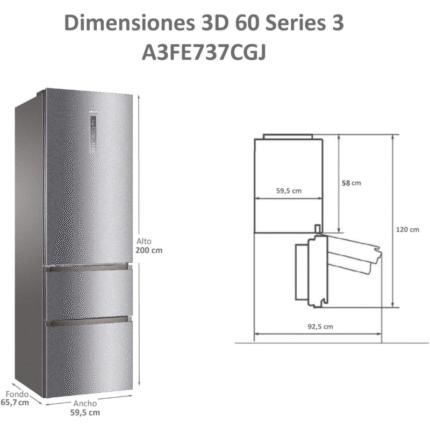 El Haier A3FE737C/837C es un frigorífico combi de libre instalación con tecnología Total No Frost, diseñado para conservar alimentos de